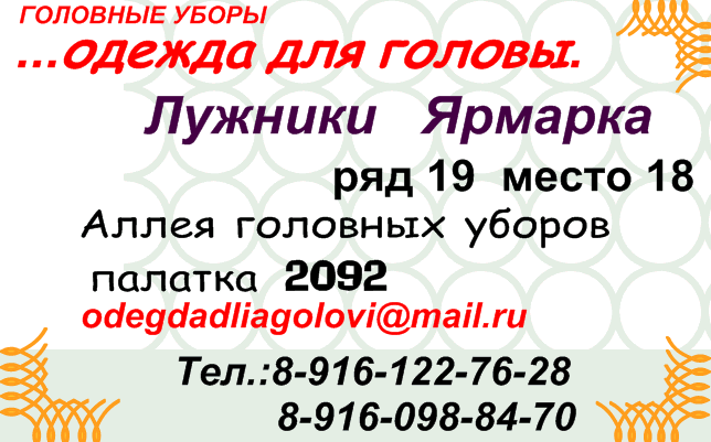 головные уборы,шапки оптовая торговля Услуги по реализации головных уборов на лужнецком оптовом рынке.Два места отработанных в течении длительного периода.работаем круглый год!изучение спроса ,постоянный контакт между производителем и покупателем (потребителем)-профессионально! |