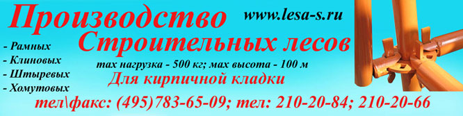 ООО Дирс предлагает по низким ценам от производителя строительные леса ЛСПР 200 Высота – до 20м, 30м, 60м, 100м, max нагрузка от 200кг до 500кг. Труба 30х30х1.5, 42х1.5, 42х2, 48х3. Рамные леса используются для высотных фасадных работ и представляют собой жёсткую каркасную конструкцию, которая легко монтируется и демонтируется. Характеристики на сайте http://www.lesa-s.ru. Оптовикам скидки и бесплатная доставка. Наши телефоны (495) 210 20 84, (985) 139 20 84, (985) 210 20 84. Изоплит, Икша, Ильинское, Ильинское-Хованское. |