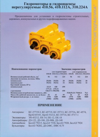 Компания ООО «Стройгидравлика» (г.Москва) (495)780-80-92 на правах официального дистрибьютора занимается поставкой гидравлического оборудования для строительной, строительно-дорожной техники, а так же для спецтехники отечественного производства. Основное наименование продукции: нерегулируемые гидромоторы, регулируемые и нерегулируемые гидронасосы, а также гидрорули производства ЗАО «Стройгидравлика» (г.Одесса, Украина) !!! Техническая информация: Гидромоторы 56,112,224 куб.см., Гидронасосы 56,112,224 куб.см., 1-2 х поточные, Гидрорули МРГ 01 – от 80 до 1000 куб.см., У 245006 / 009 от 250 до 1000 куб.см. Применяемость и взаимозаменяемость с аналогами очень широка !!! |